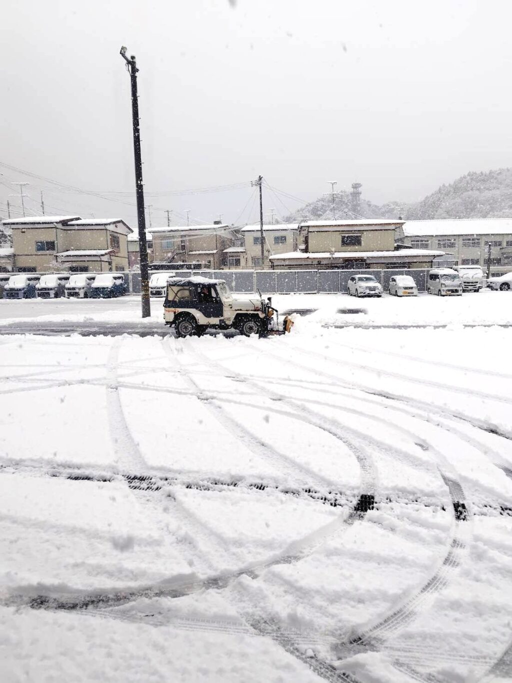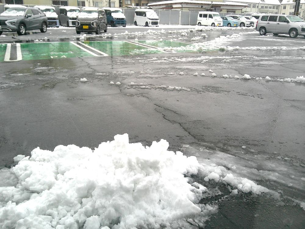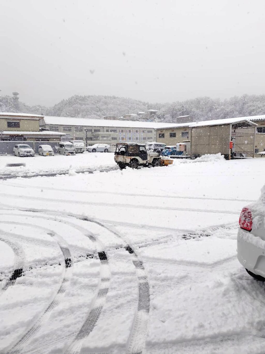 一面銀世界、降りしきる雪の中出勤し、宮古店は除雪作業をしておりました…。