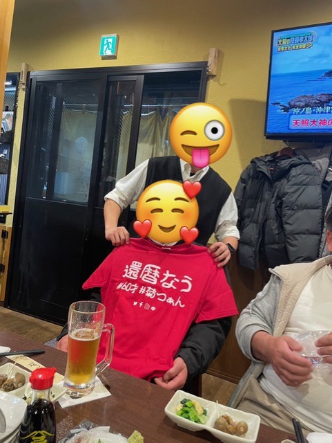 還暦と言えば赤いちゃんちゃんこを皆様想像すると思いますが、そこは釜石店スタッフ!
