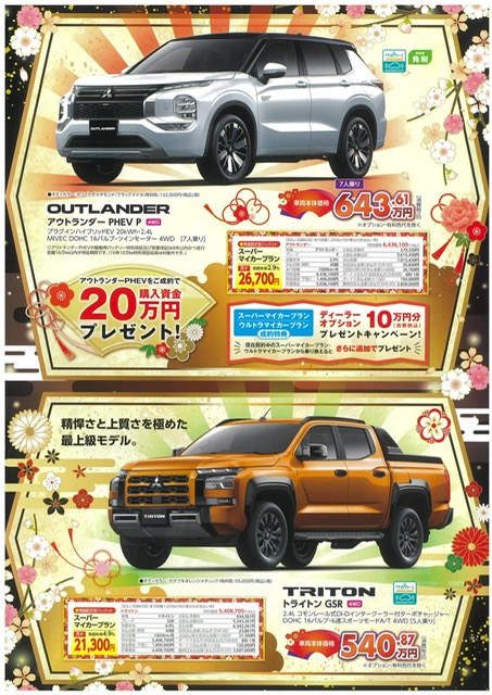さらに、期間中アウトランダーPHEVをご成約で購入資金20万円分プレゼント、
