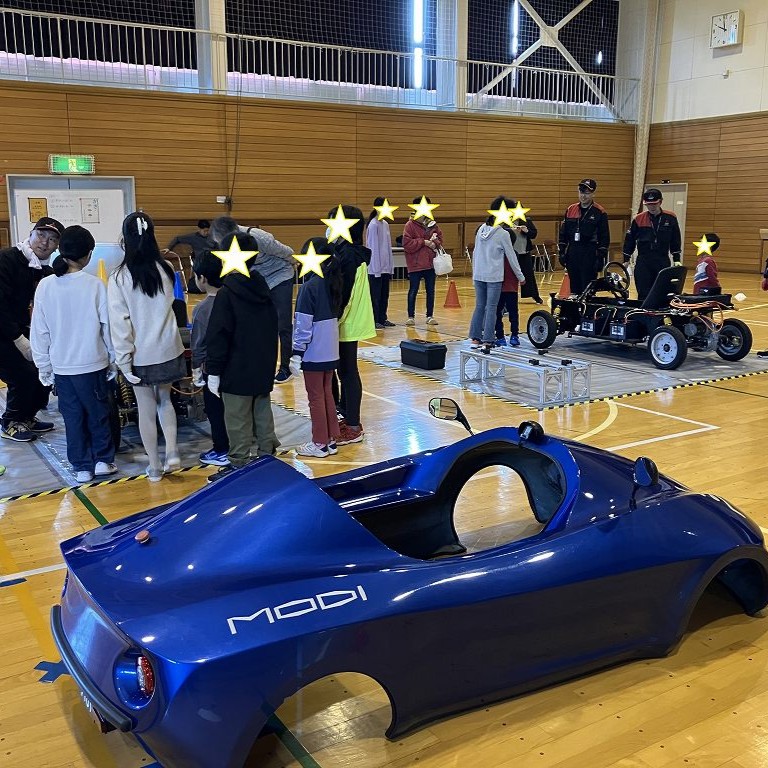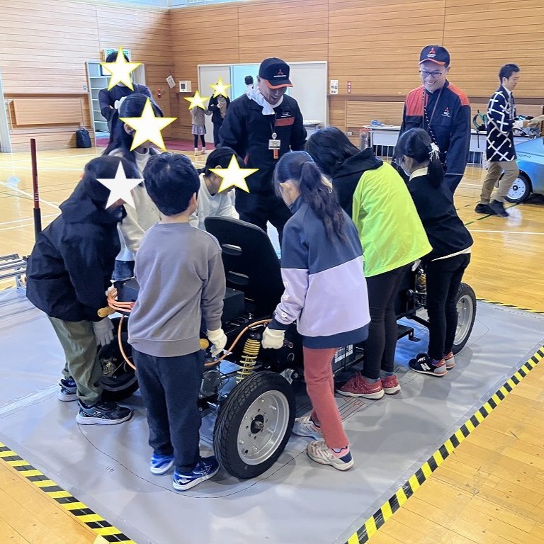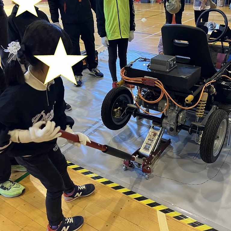 ・電気自動車がどのようにできているのか、車を持ち上げるときには持ち上げる用のものを使うことで、車が作られるのだということを知ることができました。(6年生)