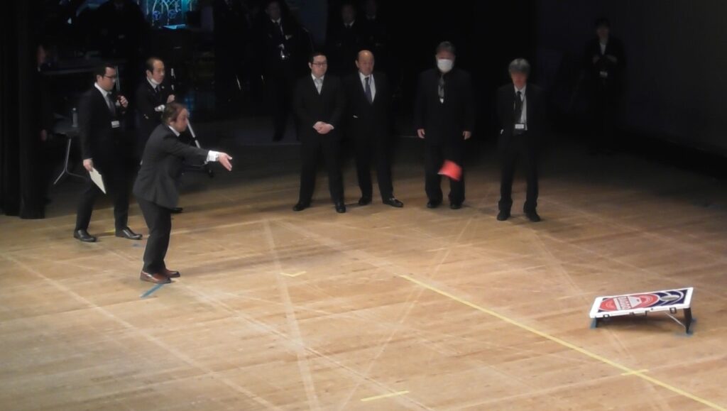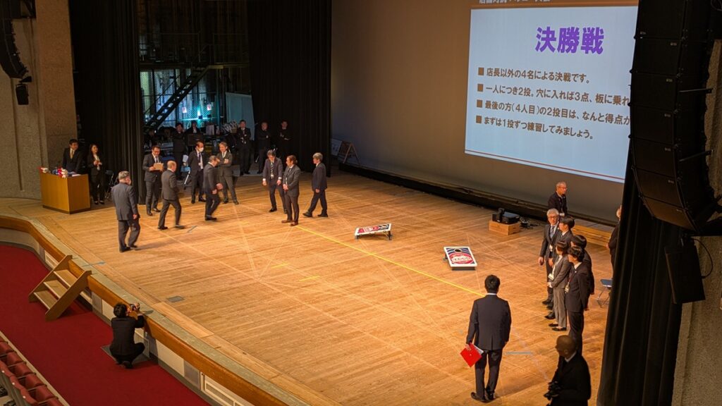 その後は、恒例行事となっている店舗対抗の「バッゴー大会」、「福男・福女じゃんけん大会」などを行いました。堅苦しいだけ内容だけでなく、このようなレクリエーションも行っております。