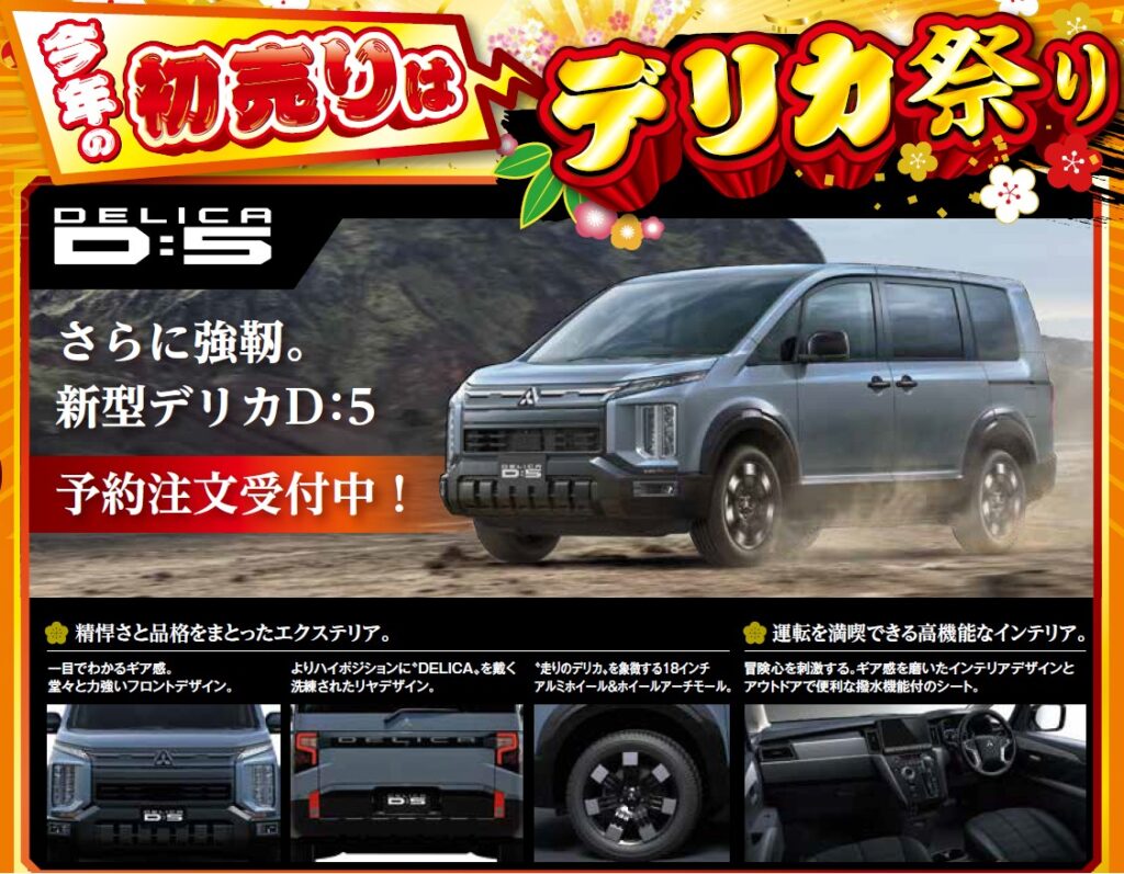 発売となったばかりの新型デリカミニ、そして予約注文でご好評の新型デリカD:5が見逃せません。